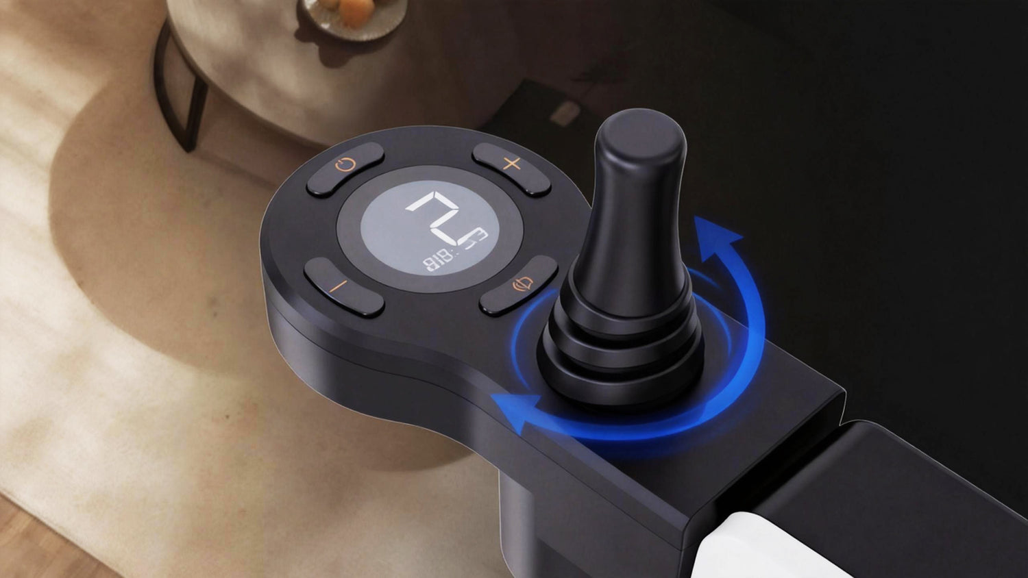 All-direction 360 degree universal joystick control featuring crystal clear display, five-notch speed travel, integrated horn and headlight.